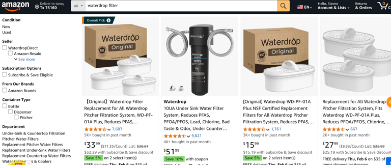 Waterdrop filters tend to have a higher upfront cost, especially for reverse osmosis systems, under-sink filters, and high-performance pitchers. However, they provide longer-lasting filters and better filtration technology, which can lead to long-term savings.